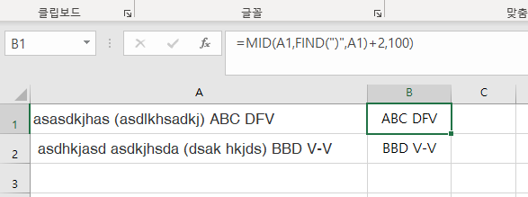 엑셀 특정 문자 뒤에 있는 글씨만 추출하는 방법